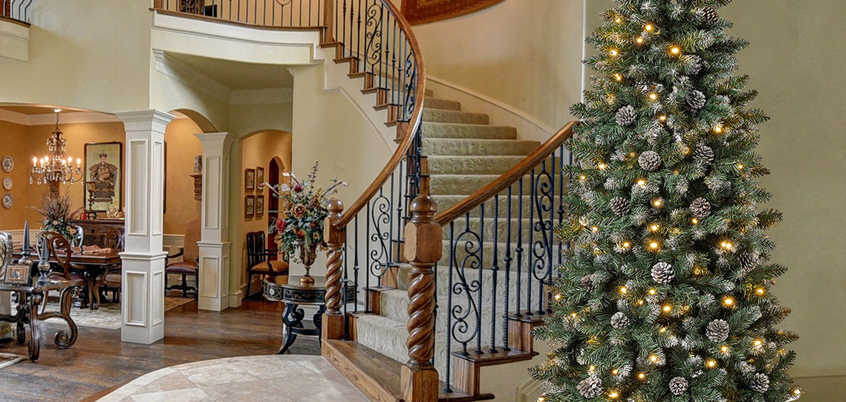 H4X096National Tree Company Artificial Slim Christmas Tree, Green, Kingswood Fir, Includes Stand, 12 Feet